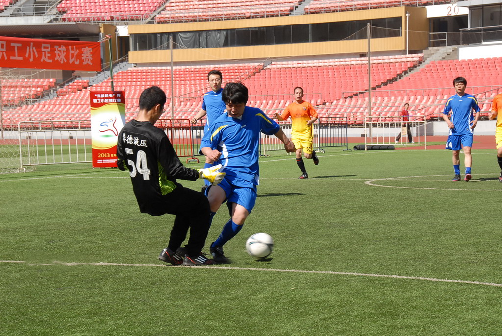 在爭(zhēng)取進(jìn)入四強(qiáng)的比賽中,天海公司足球隊(duì)與北京北重汽輪電機(jī)公司代表隊(duì)展開激戰(zhàn),面對(duì)強(qiáng)敵,賽事異常艱辛.在比賽踢成平局后,開始激烈的點(diǎn)球大戰(zhàn),最后北重公司代表隊(duì)以二球險(xiǎn)勝,天海公司與四強(qiáng)失之交臂.盡管沒有拿到四強(qiáng)的入場(chǎng)券,但天海足球隊(duì)的精彩表現(xiàn)得到了組委會(huì)和現(xiàn)場(chǎng)觀眾的一致好評(píng)。通過比賽,極大地激發(fā)了員工參與足球運(yùn)動(dòng)的積極性,促進(jìn)了足球運(yùn)動(dòng)水平的提高。
