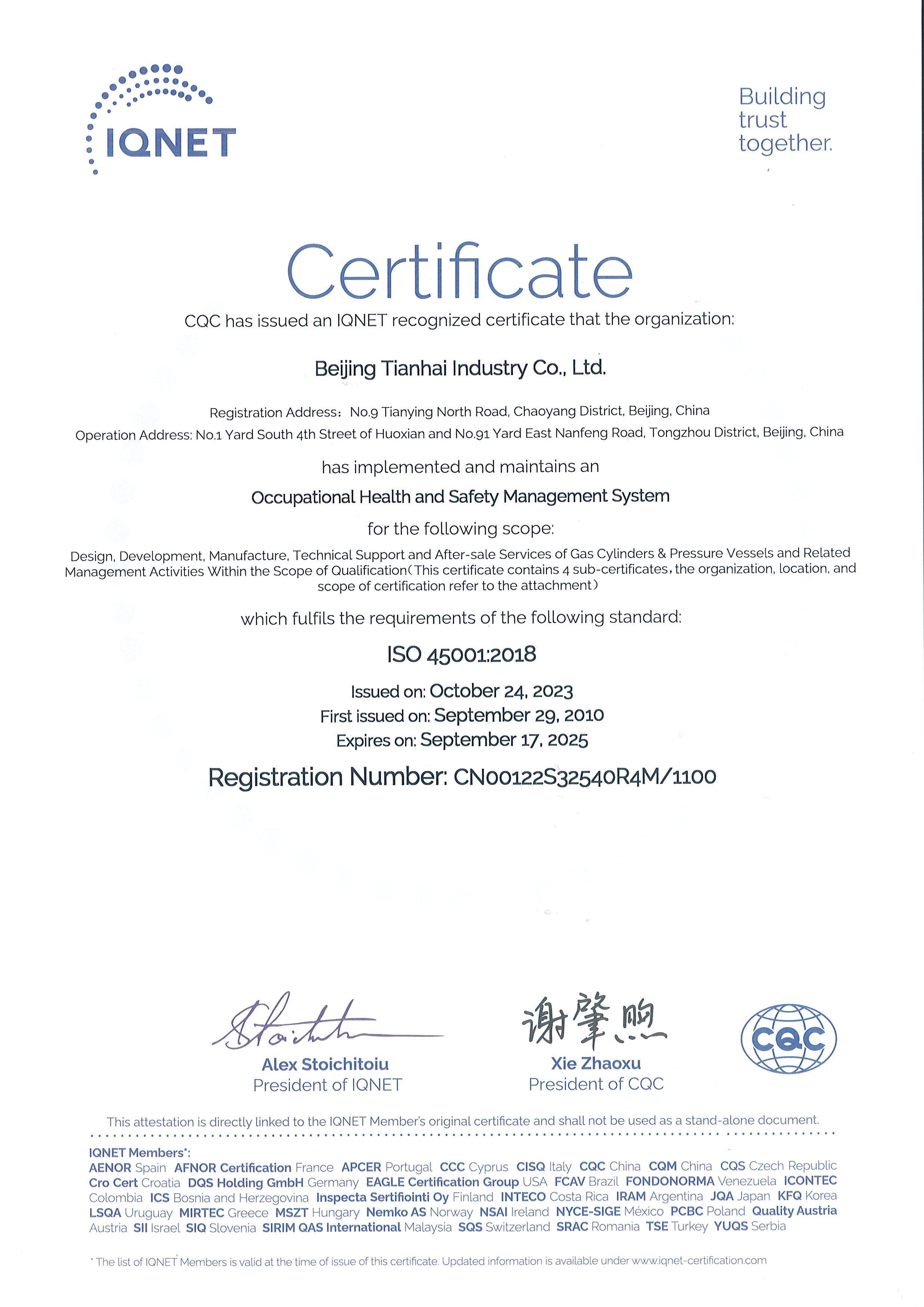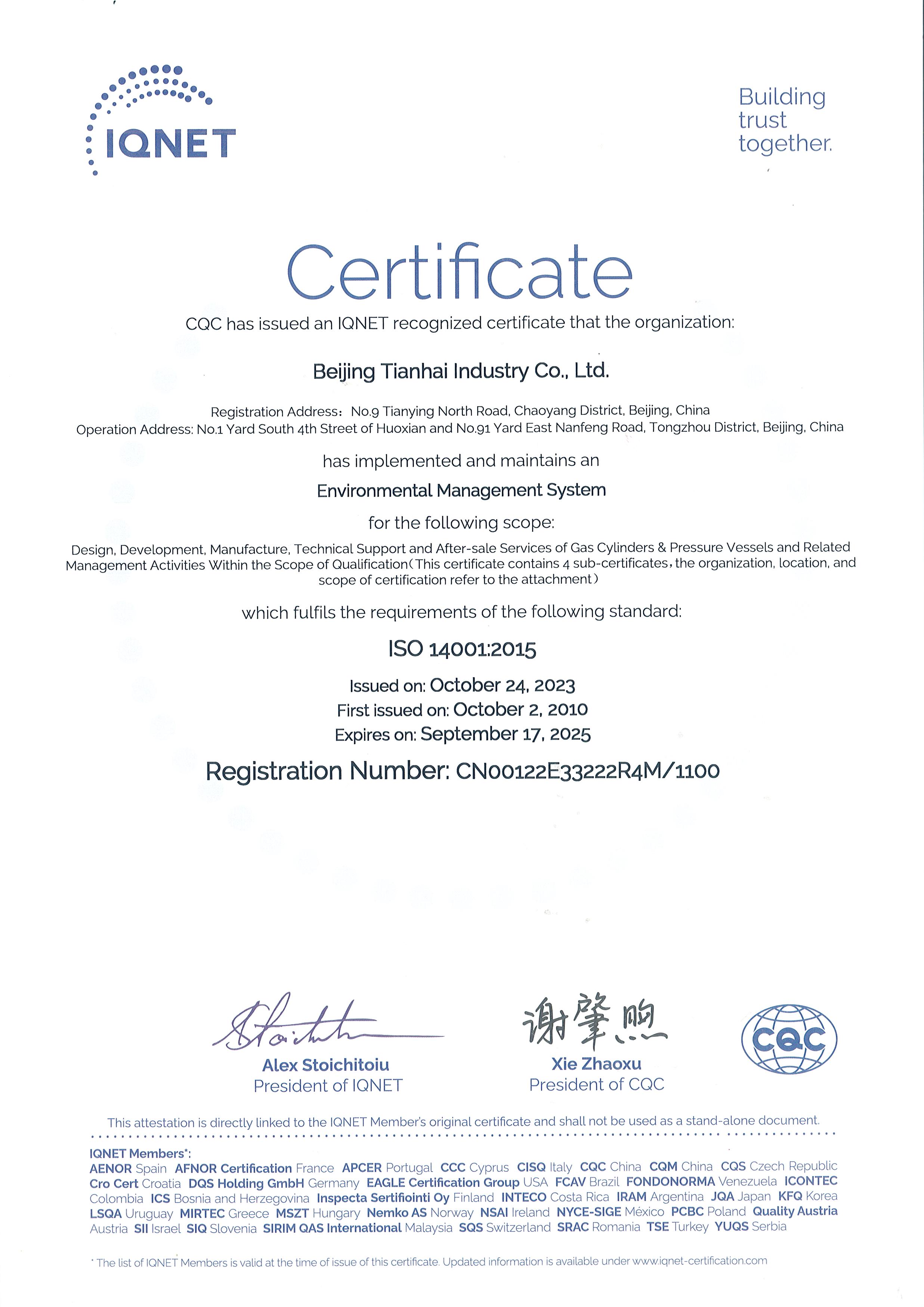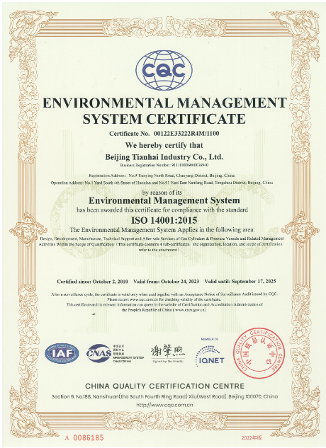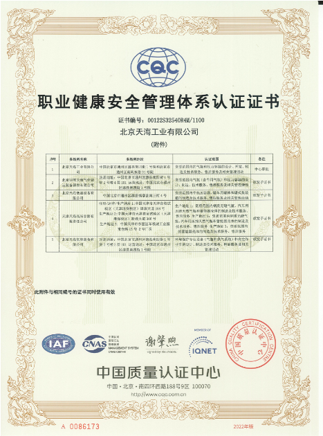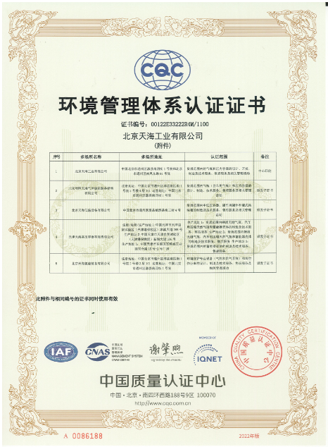 2010年-2015年,天海工業(yè)陸續(xù)建立了ISO14001和OHSAS18001環(huán)境和職業(yè)健康安全管理體系,整合了天海工業(yè)“三體系”,通過(guò)中國(guó)質(zhì)量認(rèn)證中心的認(rèn)證并取得證書。