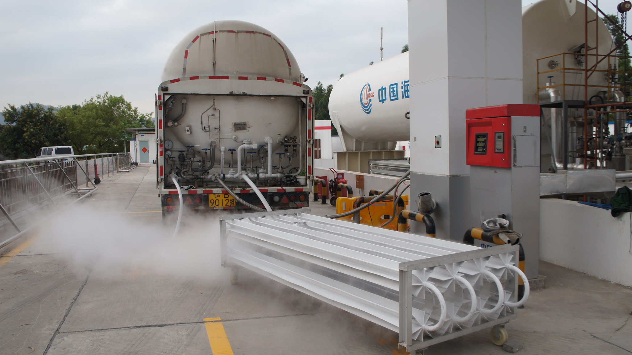 L-CNG加氣站是LNG與CNG兩種加氣方式的有機(jī)組合,是一種正在興起、具有良好推廣應(yīng)用前景的加氣站類型。它以液相、低溫的天然氣進(jìn)站,通過液相泵加壓、氣化后實(shí)現(xiàn)對汽車加氣,無需高耗電量和噪音大的氣體壓縮機(jī),站內(nèi)用能較少,因而加壓效率高、運(yùn)行費(fèi)用低。
